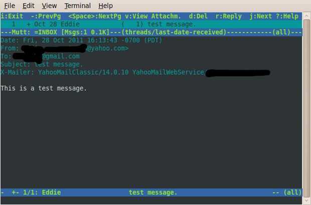 Correo electrónico de línea de comandos de Linux puede ser algo muy bueno. Por ejemplo. Si por alguna razón. debe perder su interfaz entonces usted todavía puede interactuar con el mundo. Personalmente me gusta porque no usa la interfaz gráfica de usuario permite que la máquina trabajar más rápido y puedo utilizar un viejo ordenador portátil o escritorio con recursos menos que hasta la fecha. Además usted puede automatizar algunos procedimientos conlleva, que no siempre se puede hacer en un entorno gráfico. Esperemos que una vez más usted tendrá menos motivos para enviar un equipo para el relleno sanitario.