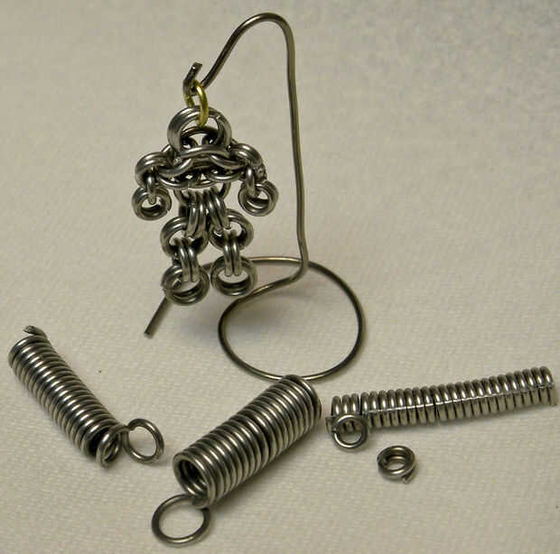 * anillos en por lo menos tres tamaños de alambre (utilicé alambre de aluminio calibre 17 para cercas eléctricas del caballo - 1/4 de pulgada de diámetro interno (i.d.), 3/16 de pulgada diámetro interno i.d. y 1/8 de pulgada)  Anillos para uno hombre de correo + 5 grandes, medio 20 y 10 pequeñas)