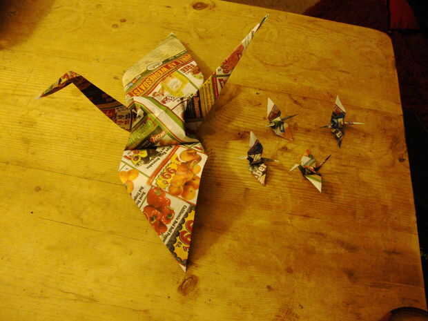 Aquí está un pensamiento: hacer origami papel de correo no deseado! Volantes! Papel de regalo de la Navidad pasada!