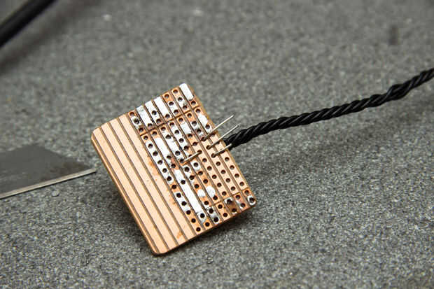 Tira de los cuatro cables, alimentarlos a través de agujeros adyacentes y soldadura.