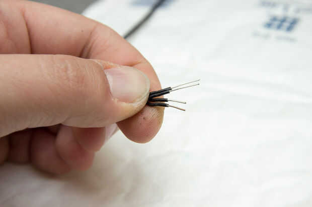 También puse una pequeña cantidad de soldadura en el otro extremo de los cables a los agujero juntos.