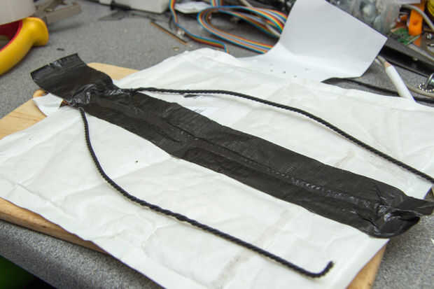 Diseño cuidadosamente los cables en las posiciones indicadas y palo abajo con la cinta aislante negra.