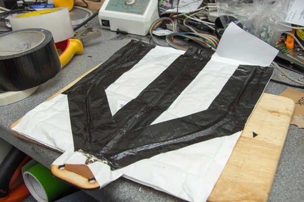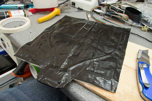 Una vez en el lugar cubre el resto de la parte posterior con cinta aislante negra. Tenga cuidado de no para superponer la cinta negra en la parte delantera, esto restringirá su rebote de luz.