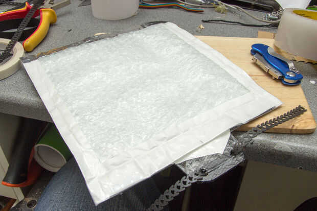 Luego corté dos ranuras más arriba en el borde inferior de la envolvente, esta corte completamente a través de todas las capas de material.