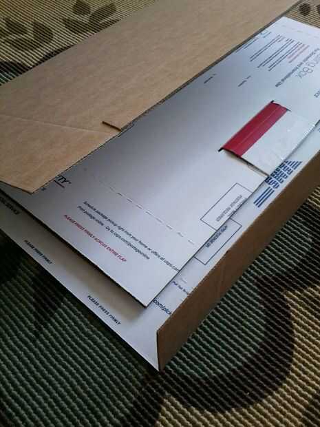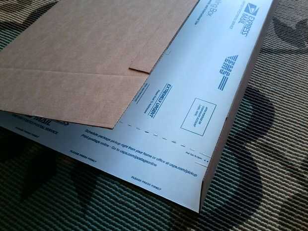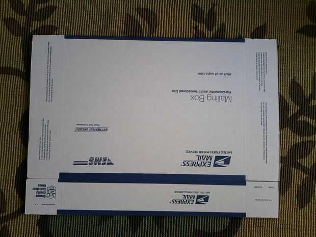 1. Tome la segunda caja llena de correo electrónico y encontrar superposición 21,5" borde donde los extremos se pegan. En el siguiente cuadro de Express Mail, este borde es donde la línea azul gruesa en la parte inferior.