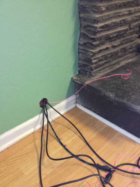 Una vez que tengas tu primera cadena run, atar varias cuerdas a él y tire hasta la parte superior de la chimenea. Cuántos cables de planificar la ejecución determinará el número de cuerdas para tirar. En mi caso, saqué 5 cuerdas para 3 cables HDMI y un cable de alimentación. La 5 º cuerda permanecerá en la pared para su uso futuro.