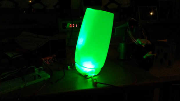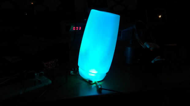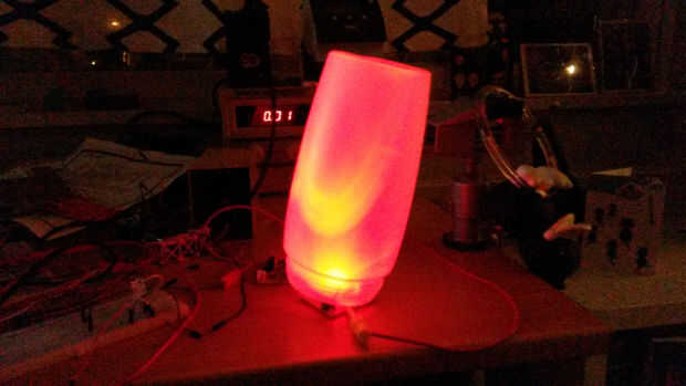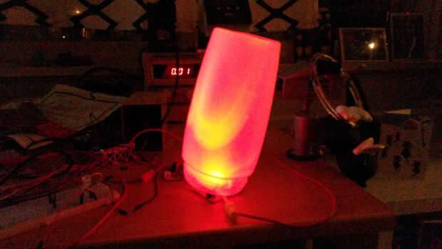 este instructable documenta el diseño y construcción de una gigante luz de techo del RGB LED, controladas por control remoto GE hackeado.Después de construir unas pequeñas lámparas RGB, decidí que quería ver hasta dónde podía tomar el concepto. Los