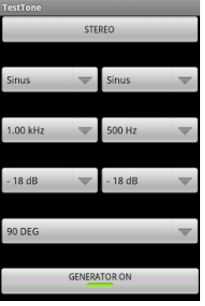 Por lo tanto tampoco necesitamos saber cómo programa aplicaciones Android o para propósitos de la prueba podemos utilizar una aplicación que nos permite ajustar el volumen, frecuencia y fase de cada canal. Hay varios pero usaba "Audio prueba tono generador" que fue en GooglePlay. Para empezar a ajustar el volumen a 0dB, fase de 180 grados y la frecuencia de 10kHz. Una vez que el generador se enciende también aumentar el volumen de los medios de comunicación en el teléfono móvil al máximo.