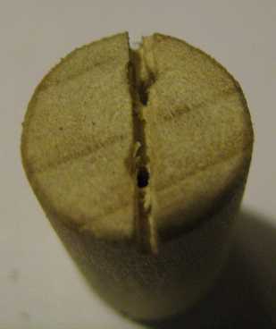 2. Vio a ambos extremos de la espiga donde los agujeros son para crear una muesca.