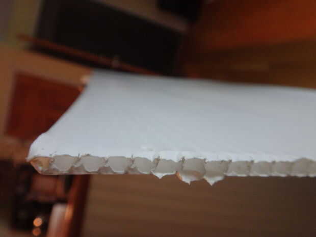 Después de tener su plan de, traslado a su hoja de plástico corrugado con su rotulador y redacción Plaza. Ahora está listo para recortar su portador. Asegúrese de que tener una plataforma de corte profundo bajo el plástico corrugado. Yo uso dos 8' hojas rígidas de aislamiento que compré en la ferretería local. Se necesita un borde recto para cortar el plástico. Yo uso un 8' aluminio travesaño de la puerta (también de la ferretería local.) Este es el mismo canto recto que uso para mi sierra circular. Es muy rígido y mantiene mi mano fuera la forma. Corrugado plástico es difícil de cortar. No querrá deslizarse con su cuchillo y cortarse. Utilice el cuidado adecuado y hacer los cortes. Ser cierto que cortar solamente el contorno de su portador. NO CORTE LAS LÍNEAS INTERIORES TODAVÍA.