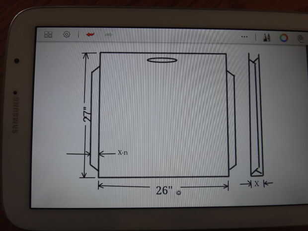 - Recuerde que debe dibujar un portador de dos caras en su plástico corrugado. (Mi plan solo muestra un lado de la portadora. El diseño real es X, lado A + lado B donde X = anchura de la parte inferior.)