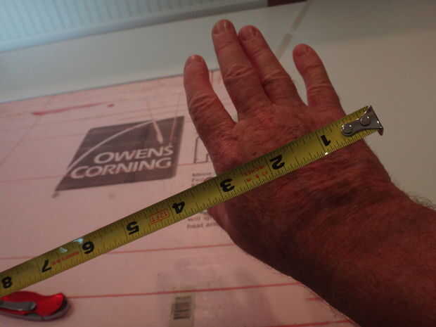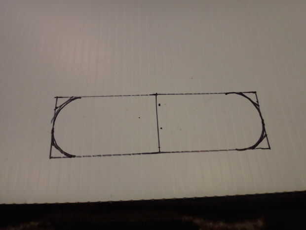Medir la anchura de su mano y añadir una pulgada de la longitud de la ranura. Hacer la ranura con los lados redondeados para mayor comodidad. Primero cortar ambos extremos de las ranuras con una sierra de agujero de 1 1/2" en mi taladro y entonces cortar el plástico entre los agujeros para crear las ranuras. No tienes que tener un taladro para hacer esto, haremos el taladro de mano. Si no tienes uno, sólo tómate tu tiempo y tomar cortes ligeros con su cuchillo, hasta que lo tienes cortado. Casi siempre hay diferentes maneras de lograr lo mismo. No sweat lo – esto no es ciencia espacial.