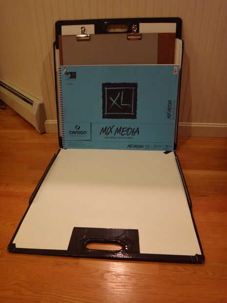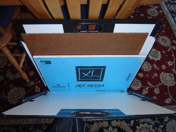 ¡ Felicidades! Han completado su portador y está listo para usar para llevar todos tus invaluables obras de arte! La siguiente parte es opcional, pero encontré mejora grandemente la utilidad de la compañía mediante la adición de correas de cierre.