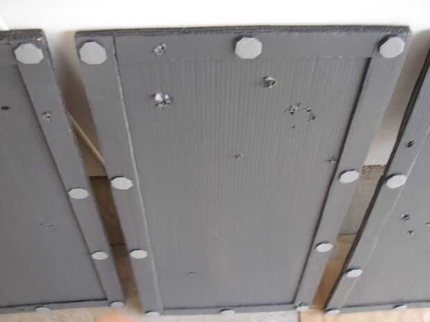 Luego con un gris ligeramente más claro, la pintura de los tornillos. Esto los pernos del acento y que no queden hacia fuera.