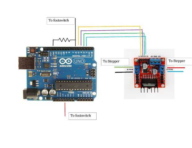 Recortar hasta los cables del paso a paso y conectar al controlador L298N paso a paso, siguiendo la codificación de color como se muestra en el diagrama.