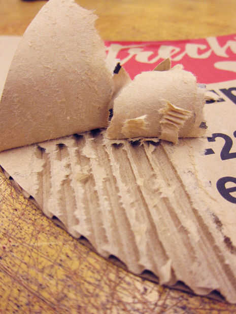 Usé cartulina acanalada y quitar la capa superior de papel por lo que fue expuesto el corrugación. Poner la corrugación boca abajo por lo que fue un bonito detalle en la parte inferior del corsé.