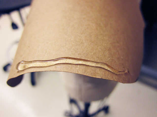 Continúe este proceso, su forma de trabajo continuando hacia adentro, aplicar una fina línea de pegamento y colocar las colmenas en la parte superior. Hacer esto hasta que han cubierto el entero lateral de cadera. Repita en el otro lado.