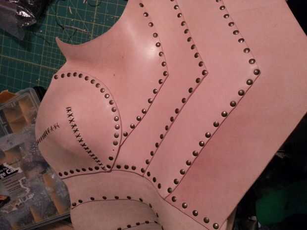 En este particular corsé que hice escogí a mano puntada la boob tazas y luego remache para el cuerpo del corsé. Yo también mojado moldeado las tazas boob para hacerlos más redondos. Un mojado moldura instructable está en camino.
