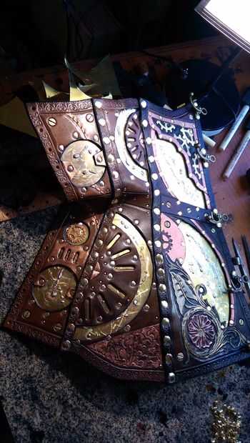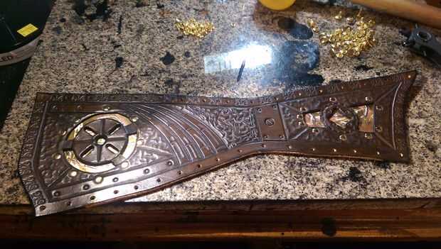 Corsé de cuero hechos a mano de Steampunk con incrustaciones de latón y herramientas personalizadas (9 / 11 paso)