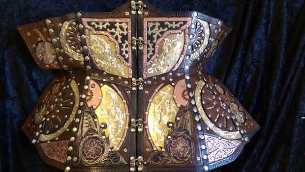 Yo quería hacer un corsé basado en la armadura de lo Rohirrim en Señor Peter Jackson de las películas de los anillos. Destacados en las dos torres y el retorno del rey, la armadura de la casa real está formada de metal martillado placa con recubrimie
