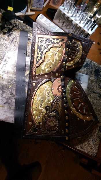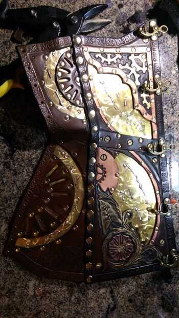 Corsé de cuero hechos a mano de Steampunk con incrustaciones de latón y herramientas personalizadas (7 / 11 paso)