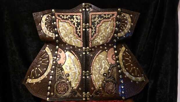 Yo quería hacer un corsé basado en la armadura de lo Rohirrim en Señor Peter Jackson de las películas de los anillos. Destacados en las dos torres y el retorno del rey, la armadura de la casa real está formada de metal martillado placa con recubrimie