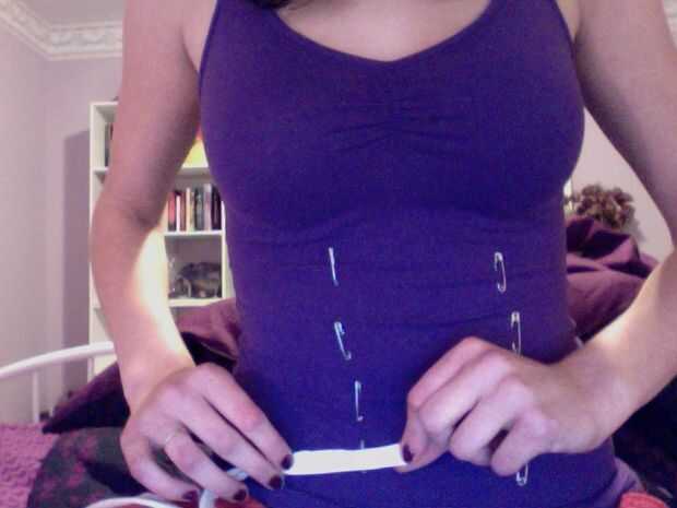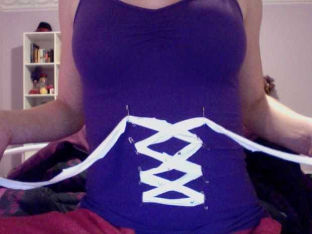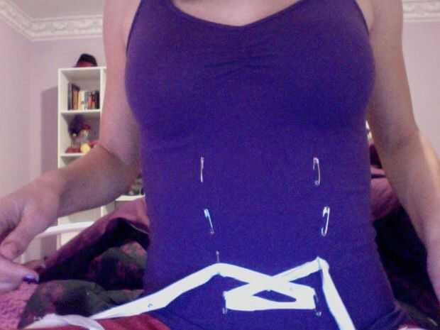 Este corsé de perno de seguridad es una manera muy sencilla para conseguir el efecto corsé de cordones con pocas fuentes estará ya tienen. Utilice esta técnica para una chaqueta suelta mejor o crear la apariencia de una cintura más pequeña en una cha
