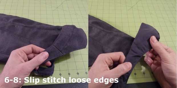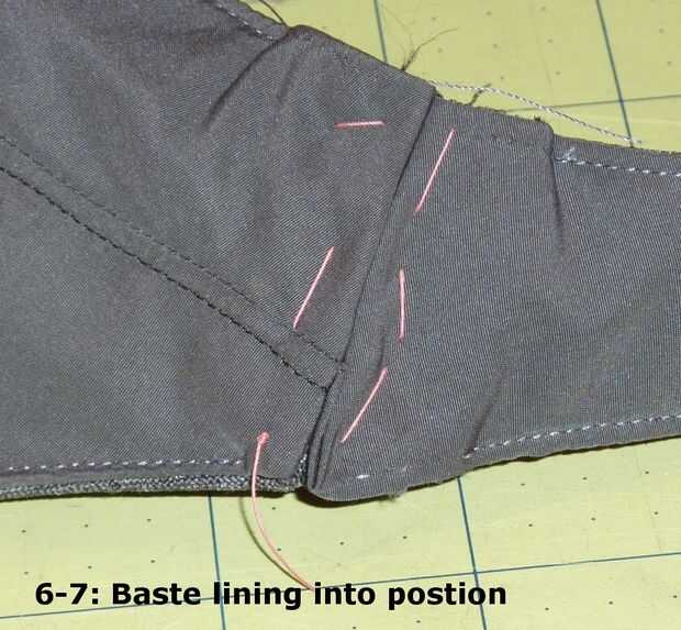 Cuidadosamente meta debajo y plegar la tela del forro. Mano Hilvanar en su lugar como en la figura 6-7.