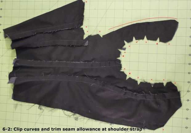 para recortar el margen de costura de la correa de hombro más cercano a la busk en 1/4 de pulgada.