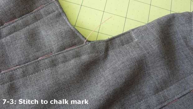 Marque una línea con alguna tiza 1,75 pulgadas de costura lateral como se muestra en la figura 7-1.