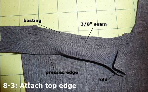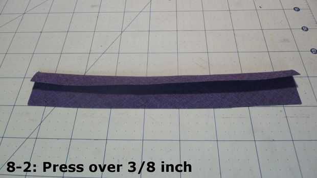 3/8 de pulgada desde el borde de la puntada. Doblar y coser por el borde lateral figura 8-3.