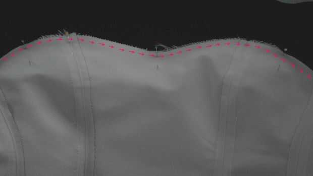 Tela de la cáscara y el forro se cose juntos en zona superior.