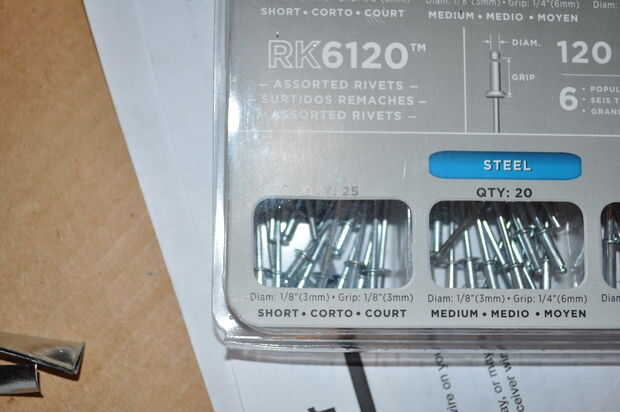 Estoy utilizando una remachadora de mano que compré en H.D. junto con remaches de 1/8 de 1/8 de acero (no aluminio).