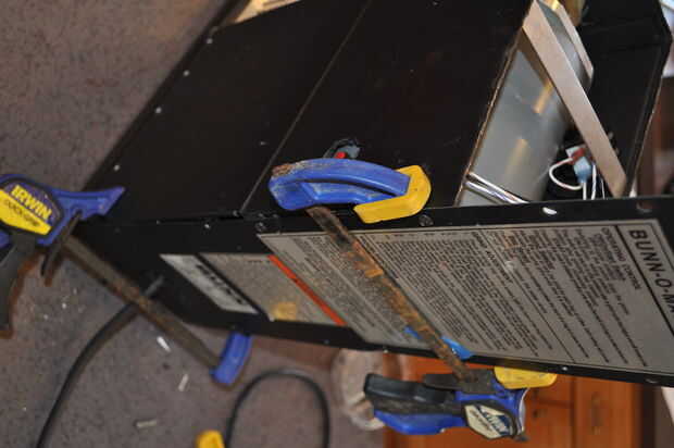 Resulta que es más fácil unir las secciones superior e inferior primero en lugar de usar reglas y matemáticas. (matemáticas? ¿cómo es esto todavía la misma cerveza?) También fije el estribo de la parte inferior a la base así.