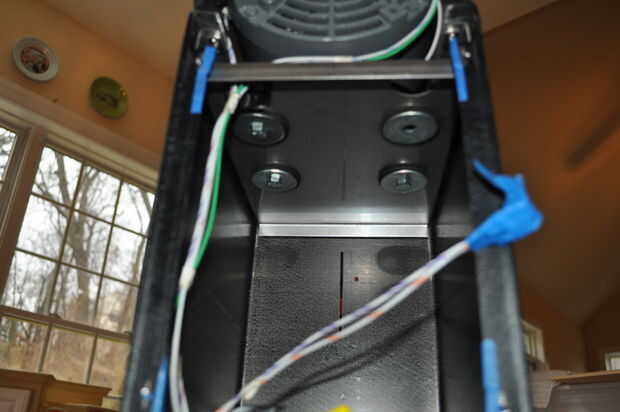 Quite los soportes del motor. 4 tornillos que van a través de arandelas y un tope de goma. El motor ahora debe ser capaz de extraer la parte posterior. Esta cosa es pesada. Mejor degustar la cerveza otra vez para asegurarse de que están preparados.