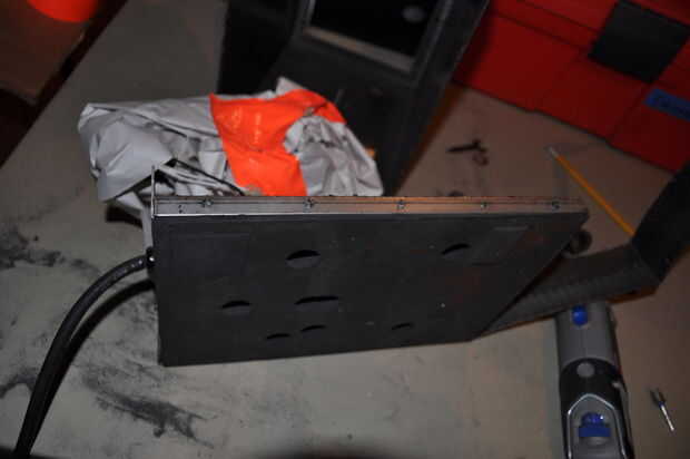 La plataforma de base espumosa permanecerá intacta, una vez que nos separe de las paredes del caso. Este es un buen momento para proteger los cables y la caja de control de empujar todo dentro de un ziplock y grabarlo cerró. Utilizar algún material de empaque y cinta naranja. Virutas de metal que vuelan por todas partes pronto.
