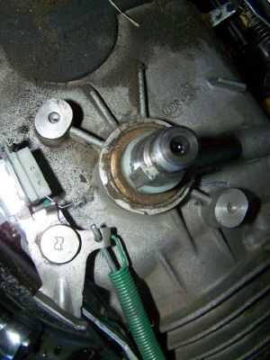 En la foto la primavera verde se conecta al freno motor automático. Antes de colocar el volante en el cigüeñal, ATA palanca de embrague del hombre muerto contra el mango de la podadora se mantiene como cuando se siega.