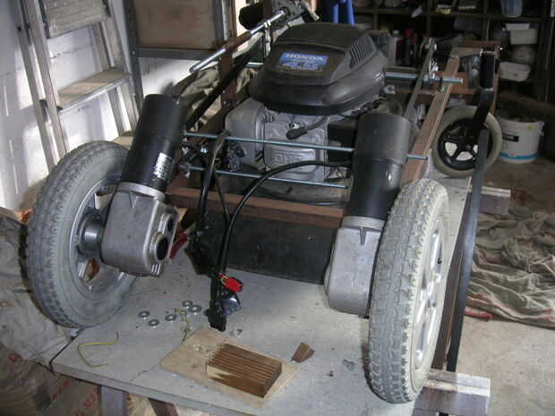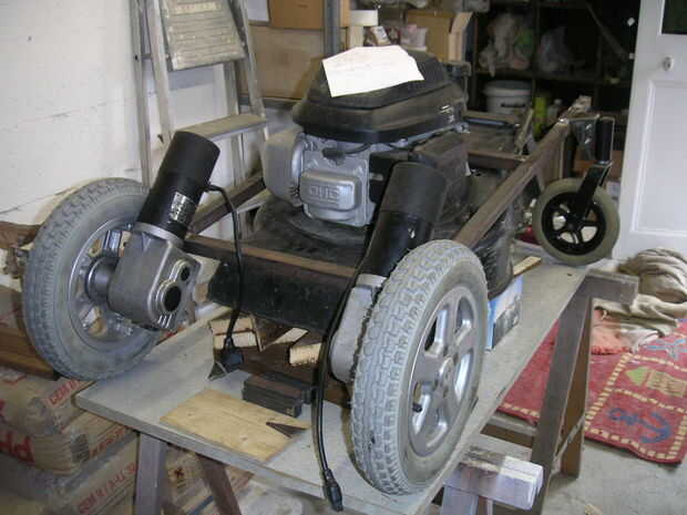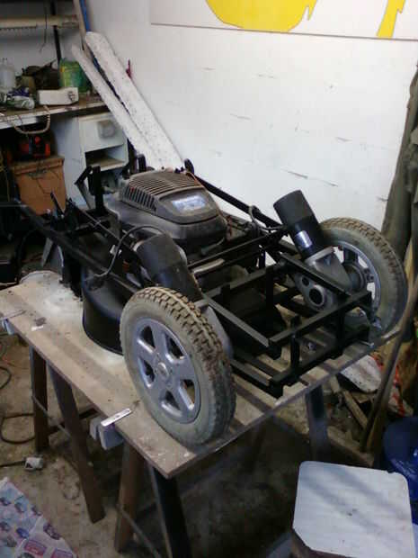 Modificación d ' une tondeuse thermique, création d ' un chasis pour incorporer 2 moteurs électriques