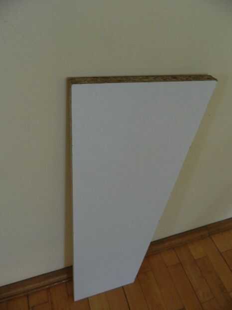 - una sola pieza de tablero de partícula (también se puede utilizar MDF, madera contrachapada, metal, algo que tiene una superficie plana y decente resistencia y durabilidad). Mina era un desecho 80cmx25cm, pedazo grueso de 20mm que tenía de otro proyecto. Un taller de muebles puede darle pedazos de chatarra gratis o por un precio muy pequeño. El brazo de la cuchilla debe soportar cierta tensión considerable, así que busque un material lo suficientemente fuerte como para.