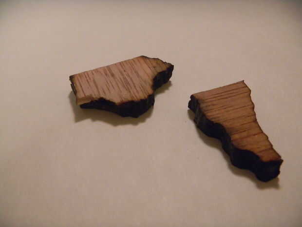 Os he adjunto fotos de algunos de los diferentes materiales después de que han sido cortados. 1/16 de pulgada del plexiglás, plexiglás de 3/32", caucho de espuma de 1/8" y 1/4" madera contrachapada del abedul. También hay fotos de los diseños que hice en Inkscape, como me gustaría para ser laser corte y corte con este método en lugar de imprimir, cortar y grabar en su lugar. Las imágenes muestran cuán cerca estaba el diseño real, y todo lo que necesitan es lijar algunos para limpiar.