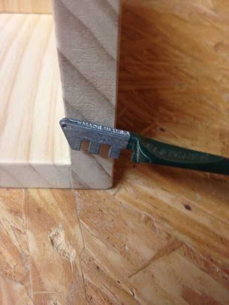 Ya que sólo se necesita parte de corte para vidrio, utilicé la Dremel para cortar la parte que necesitaría. Limpió con un archivo y bloque de lijado, por lo que veía mejor. Entonces había alineado le en el lado de la mesa con una botella, por lo que pude averiguar de donde debe ir.