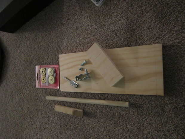 4 trozos pequeños de madera para los pies (otra vez el tamaño no es importante, solo tienen que borrar la parte inferior de los rodillos)