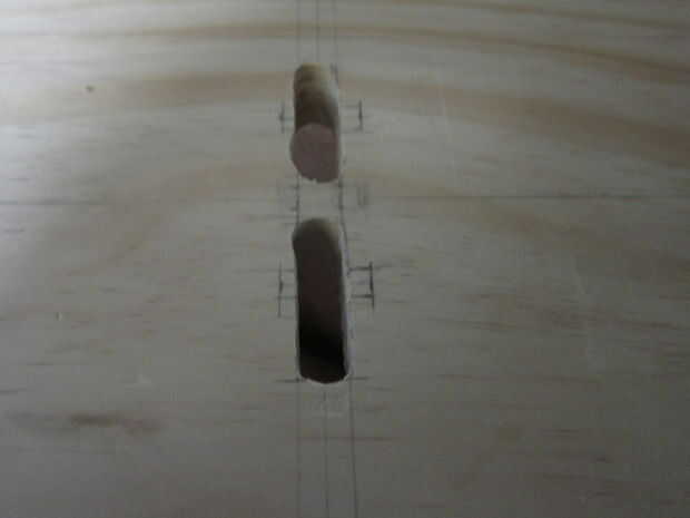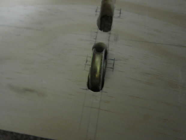 Ahora que ya tienes todo puesto hacia fuera adelante y perfore los espacios para los rodillos. Usé un proyecto de ley de forstner para deshacerse de la mayoría de la madera y una dremel con una broca lija/archivos para borrar los bordes.