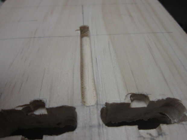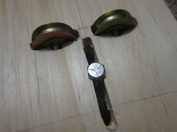 Ahora que ya sabes donde la reja se va a mover, para agregar un canal a lo largo del centro para evitar desplazamiento y para que pueda colocar un tornillo de ajuste (o en este caso del perno) para trabarla en su lugar. Comience por dibujar un rectángulo apenas más ancho que el perno de 1/4" directamente detrás del espalda conjunto de rodillos. Poco a poco rebaje el canal hasta que te has ido a través de todo el camino. Una vez que tienes el canal de corte, asegúrese de que las diapositivas perno fácilmente a través de él. El siguiente paso es montar el perno a la reja.