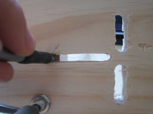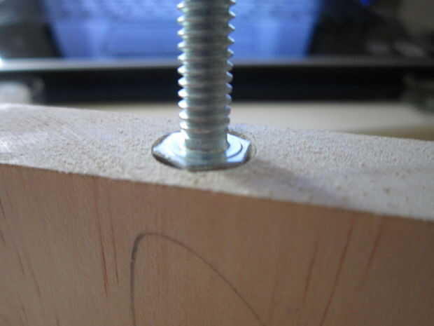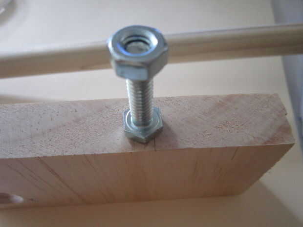 Configurar el tope con el pasador en su lugar para saber exactamente dónde se caen y sosténgala sobre el extremo del canal que acaba de hacer. Marcar un punto donde quieres el perno para ir. Puede ser más fácil a la abrazadera en su lugar para evitar moverse mientras intenta marcarlo. Una vez que lo tienes marcado, centro de la cabeza del perno sobre él y trazar sobre la madera. Luego, usando un 1/2' pieza Forstner de realizar una cavidad sólo tan profunda como la cabeza del tornillo que debe ser aproximadamente 1/8". Después de que ha hecho que el tornillo quede al ras con la madera adelante y péguelo en. Puede utilizar la tuerca de 1/4" para establecer la ubicación de la reja.
