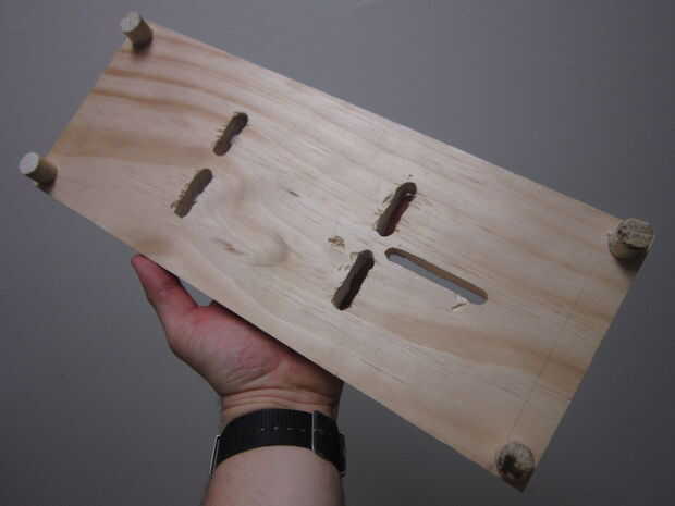 Finalmente ha llegado el momento de montar todo el asunto! Usted puede comenzar pegando los pies en la parte inferior de la base. Una vez que estén encendido y nivel, puede poner un poco de pegamento en los huecos de los árboles y puso en lugar seco. Asegúrese de no poner demasiado pegamento... no desea adherirse a los rodillos. A continuación, pegue el pasador en el soporte de la esquina y luego pegar el titular en la esquina de la base.