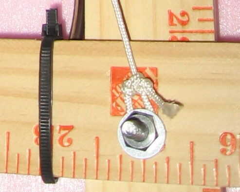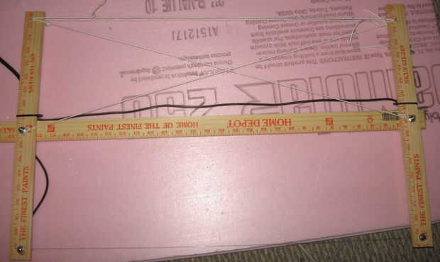 Atar un lazo en un extremo de un trozo de 3 pies de cuerda y el gancho debajo de la lavadora de uno de los tornillos de mediados. Ver las fotos. Enrosque el otro extremo de la cadena aunque agujero de la pierna opuesta. Cuadrado del marco y atar la cuerda. Repita con otra cadena para el otro lado, pero cuando amarra la cuerda en la parte superior de la pierna esta vez, asegúrese de que tener cierta tensión. Ahora tanto las trings criss-cross deben ser muy apretados, y debería haber cierta tensión leve en el cable también. Está bien si la tensión es un poco flojo en este punto. Ahora usted puede apretar tanto los mediados tornillos con la llave. No necesita chrush nada, sólo hacer em lo suficientemente apretada como para unir todo.