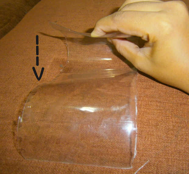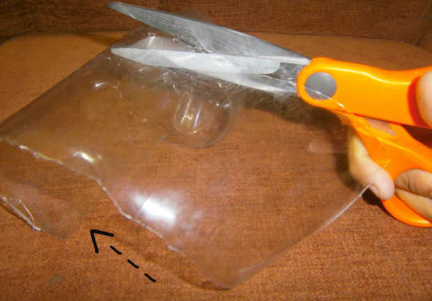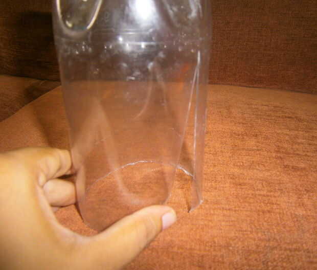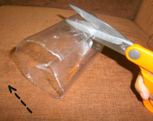 • Con la ayuda de tijeras corta a lo largo del cuerpo en la dirección vertical de la botella.