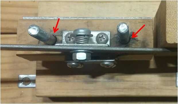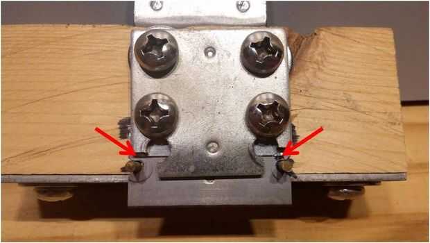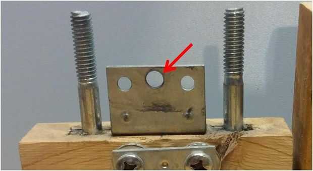 Para este montaje, un pedazo corto ángulo de hierro fue agregado a la parte superior, sujeta con dos tornillos. Un agujero fue perforado en el centro para el pivote del brazo de palanca (visto en el paso 4).