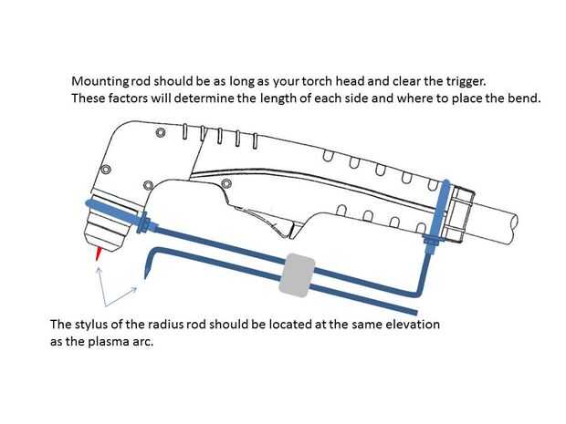 La vara de montaje debe ser tan largo como la cabeza de la antorcha y claro el gatillo. Estos factores determinarán la longitud de cada lado y dónde colocar la curva. El lápiz de la barra de radio debe estar ubicado en la misma elevación como el arco de plasma. Estos factores también determinarán la longitud de cada lado y dónde colocar la curva.